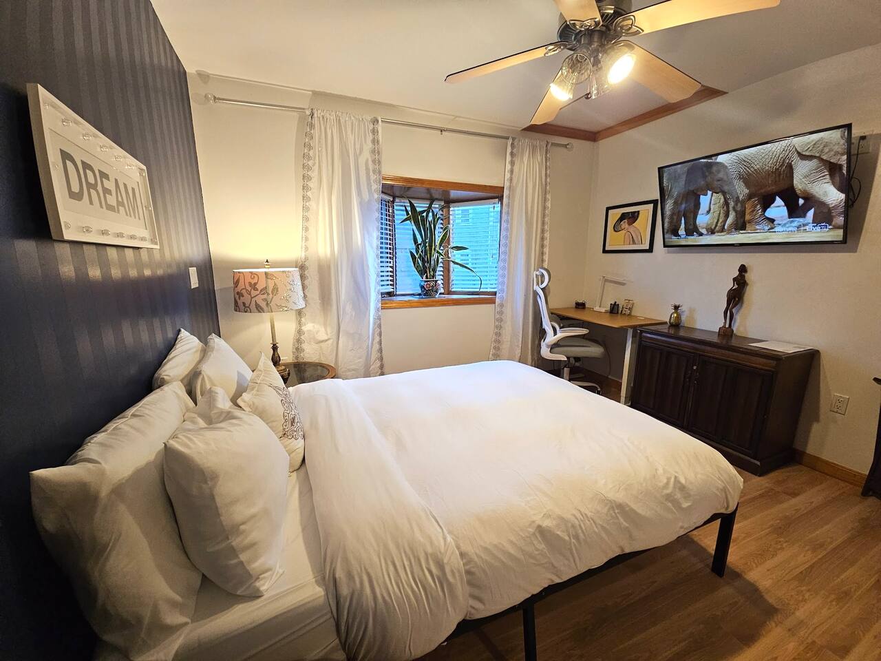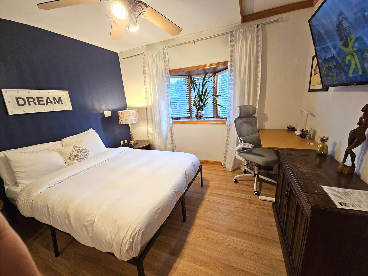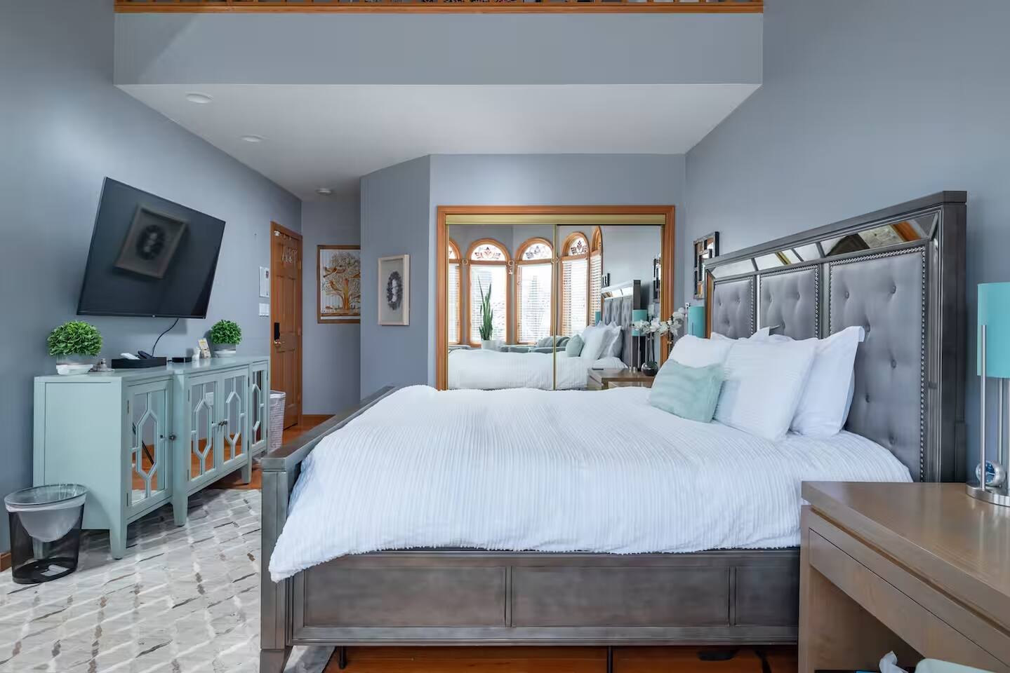 ❤️ Tap the heart in the top right corner to save this listing and share it with your travel crew. ✨ What You’ll Love: 🛏️ 4 Beautiful Bedroom Suites each w/ Private Bathrooms (3 Queen Bedrooms with 3 Loft Areas + 1 Master Suite with King bed) Each room offers a calming retreat, complete with plush bedding, memory foam mattresses, a minimalist design, ample storage, and blackout curtains for deep, uninterrupted sleep. Private En-suite bathroom for each bedroom. Loft areas include additional seating, a workout area, and additional workspace. 🍽️ Chef’s Kitchen A highlight of the home—cook with confidence in a modern, fully equipped kitchen featuring quartz countertops, stainless steel appliances, premium cookware, and a large central island perfect for gathering or entertaining. 🛋️ Spacious Living + Dining Areas An open-concept layout designed for flow, whether you’re hosting a meal, working remotely, or watching a movie with loved ones. 🚿 Modern Bathrooms Clean lines, updated fixtures, and spa-style touches and jacuzzi tubs ensure a refreshing start and end to your day. 🧺 In-Unit Washer & Dryer Ideal for longer stays or travel with family. 📶 High-Speed WiFi + Smart TVs Stream, Zoom, or unplug at your pace.