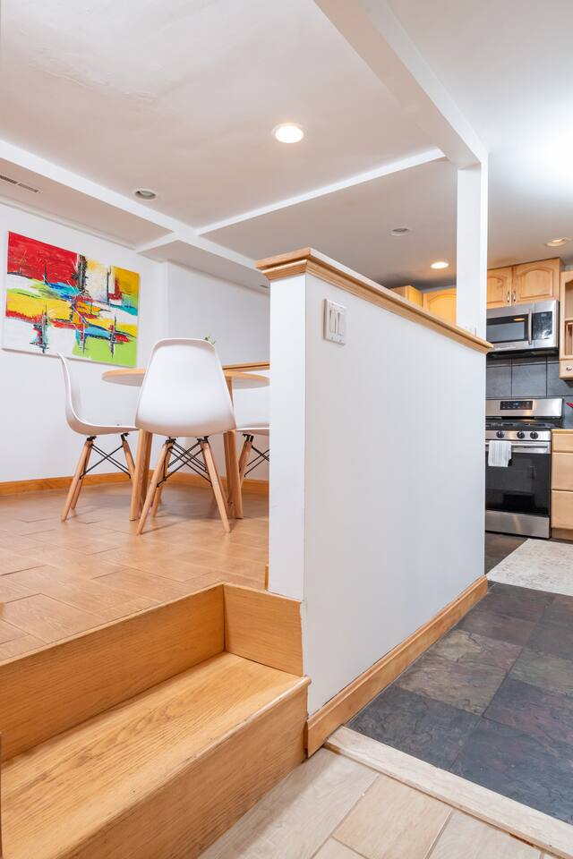 Stay in this fully renovated suite featuring a King-size memory foam bed designed for your comfort. π Private driveway & entry for easy, stress-free parking. π³ Fully equipped kitchen with modern stainless steel appliances, including a gas stove, microwave & dishwasher. π Private bathroom with relaxing Jacuzzi tub. π½οΈ Dining area, work desk, high-speed Wi-Fi, and Smart TV for your convenience. π Relax in comfort near Boston, read our glowing 5-star reviews!